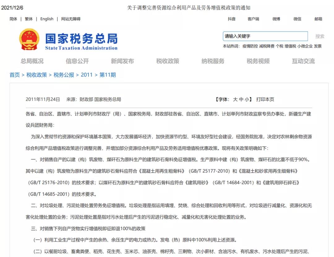 國家稅務總局《關(guān)于調(diào)整完善資源綜合利用產(chǎn)品及勞務增值稅政策的通知》,明確指出: 為深入貫徹節(jié)約資源和保護環(huán)境基本國策,大力發(fā)展循環(huán)經(jīng)濟,加快資源節(jié)約型、環(huán)境友好型社會建設(shè),經(jīng)國務院批準,決定對農(nóng)林剩余物資源綜合利用產(chǎn)品增值稅政策進行調(diào)整完善,并增加部分資源綜合利用產(chǎn)品及勞務適用增值稅優(yōu)惠政策。